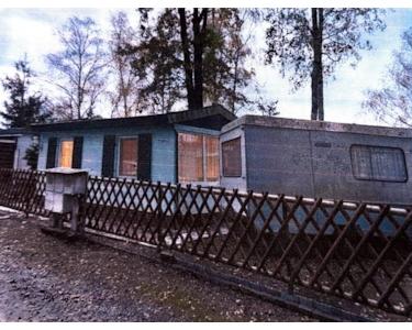 Der Wohnwagen gehört zum Angebot und ist an die Elektroanlage angeschlossen. Der Küchenbereich dort ist mit zwei elektrischen Platten ausgerüstet.