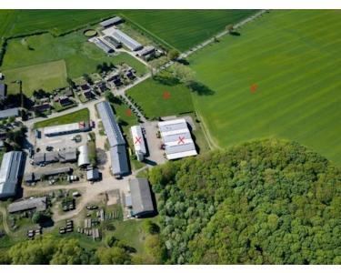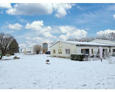 Ebenfalls gehört ein weiteres Gebäude mit Ausstellungs-/Büroflächen (ca. 212 m²) sowie Sozialräumen (ca. 199 m²) sowie landwirtschaftliche Nutzflächen (Acker- und Grünlandflächen, ca. 33.200 m²) zum Anwesen.