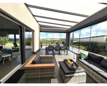 – Dreifachverglasung, viele bodentiefe Fenster mit Schiebefunktion
