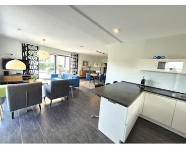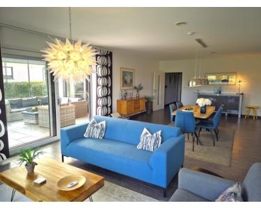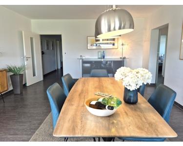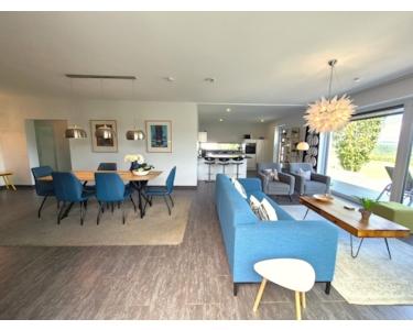 Das Objekt wurde seither ausschließlich als Ferienhaus genutzt und ist daher voll möbliert. Neben einem großen Wohn-Essbereich mit zum Wohnbereich offener Küche stehen drei Doppelschlafzimmer, zwei Bäder und ein Technikraum mit Waschmaschinenanschluss zur Verfügung. Alle Zimmer sind lichtdurchflutet.