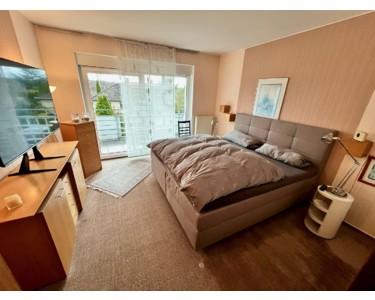 Insgesamt stehen sechs Zimmer, drei Badezimmer sowie zwei Küchen zur Verfügung. Besonders hervorzuheben ist der offen und lichtdurchflutet gestaltete Wohnbereich, der durch bodentiefe Fensterelemente ein angenehmes Wohnambiente schafft und den Blick in den Garten freigibt. Ein besonderes Highlight des Hauses ist der Kamin, der dem Wohnbereich eine behagliche Atmosphäre verleiht und insbesondere in den kühleren Monaten für gemütliche Stunden sorgt. Er unterstreicht den wohnlichen Charakter des Hauses und schafft einen zentralen Treffpunkt für entspannte Abende im Kreis von Familie und Freunden. Auch das Schlafzimmer profitiert von großflächigen Fensterfronten und verfügt zusätzlich über einen direkt angeschlossenen Balkon, der zu entspannten Momenten im Freien einlädt.