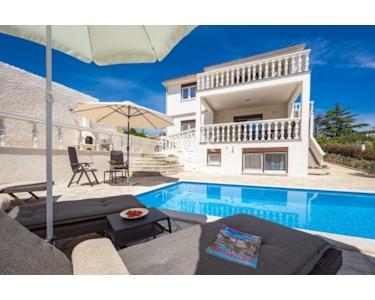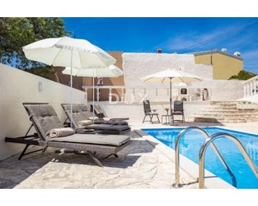 Wir bieten ein freistehendes Haus mit drei Wohneinheiten und Pool an.