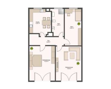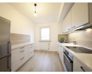 Diese bezugsfreie, ca. 65m² große, vollständig modernisiert und renovierte, lichtdurchflutete 3Zimmer-Wohnung im vierten Obergeschoss überzeugt durch ihre durchdachte Grundrissgestaltung und ein angenehmes Wohnambiente. Der großzügige Flur bildet das zentrale Element der Wohnung und erschließt alle Räume auf kurzem Weg.