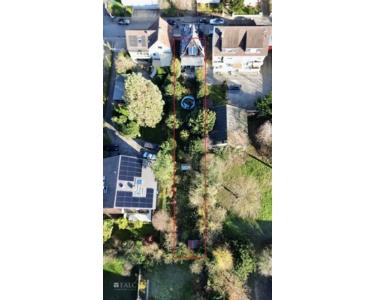 Aus der Vogelperspektive ist die großzügige Ausdehnung des Grundstücks sichtbar. Der vorhandene Baumbestand sorgt für Privatsphäre und eine natürliche Begrünung, die das Gesamtbild harmonisch abrundet.