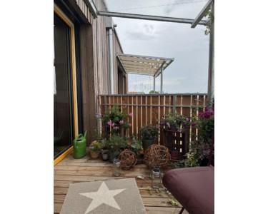 Die Wohnung hat nicht nur einen privaten, großen Balkon, sondern wird durch einen Zugang zum Laubengang, mit balkonartiger Ausbuchtung erweitert.