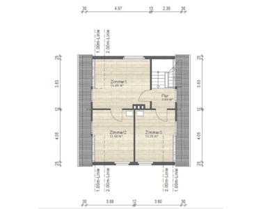 Über eine Treppe gelangen Sie in das Obergeschoss mit 3 weiteren Räumen - gut nutzbar als Schlafzimmer, Arbeitszimmer und Kinderzimmer.