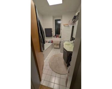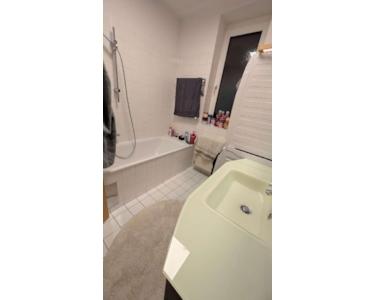 - Geräumiges Badezimmer mit Wanne, WC und Fenster.