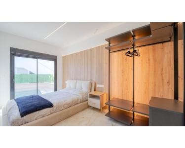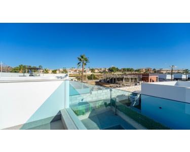 MAYMAR präsentiert diese neuwertige freistehende Villa mit privatem Pool in der Urbanisation Oasis Villas, einer der ruhigsten und begehrtesten Gegenden von Algorfa.~~Die Immobilie liegt in einer ruhigen Wohngegend mit hervorragender Anbindung, umgeben von Natur und nur wenige Minuten von allen Annehmlichkeiten entfernt: Geschäfte, Restaurants, Apotheke, Einkaufszentrum und der traditionelle Wochenmarkt. Die Strände von Guardamar sind nur 12 Minuten entfernt, der Flughafen Alicante etwa 30–35 Minuten.~~Mit 104 m2 Wohnfläche auf einem 236 m2 großen Grundstück und einer privaten Dachterrasse von 87 m2 bietet diese Villa eine durchdachte Aufteilung und hervorragende Möglichkeiten, das mediterrane Klima zu genießen. Der Zustand ist neuwertig – ideal zum Einziehen oder als renditestarke Investition.~~Der Wohnbereich verfügt über ein helles Wohnzimmer mit offener, voll ausgestatteter Küche, Klimaanlage und Zugang zur Veranda und zum Pool.~Der Schlafbereich umfasst drei Schlafzimmer mit Einbauschränken und zwei komplette Badezimmer, eines davon en suite.~~Dank der Südausrichtung genießt die Immobilie den ganzen Tag über natürliches Licht und einen freien Blick, der das Raumgefühl und den Komfort unterstreicht.~Hochwertige Ausstattungen: Aerothermie-Heizung, Video-Gegensprechanlage, Alarmanlage, Sicherheitstür, lackierte Holztüren, Aluminiumfenster mit Doppelverglasung, Steinzeugboden. Die Villa wird möbliert verkauft.~Zusätzlich gibt es eine Veranda mit Stellplatz und eine herrliche Dachterrasse mit 87 m2 – perfekt zum Sonnenbaden oder für gesellige Abende.~~Eine einzigartige Immobilie für alle, die Ruhe, Komfort und mediterranen Lebensstil in Meeresnähe schätzen.