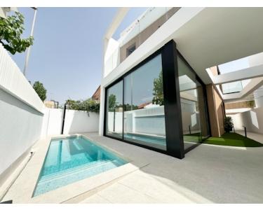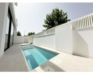 Exklusive Neubauvillen 300 m vom Strand entfernt in Torre de la Horadada~~Luxuriöses Wohnen an der Küste in bester Lage~Entdecken Sie dieses exklusive Neubauprojekt in Torre de la Horadada, einer der begehrtesten Küstenstädte im Süden von Alicante. Nur 300 m vom Mittelmeer entfernt und in Laufnähe zu Geschäften, Restaurants und täglichen Dienstleistungen bieten diese Villen eine außergewöhnliche Gelegenheit, den Lebensstil der Costa Blanca zu genießen. Torre de la Horadada ist bekannt für seine entspannte Atmosphäre, seine schöne Promenade und seine feinen Sandstrände, was es sowohl für das permanente Wohnen als auch für den Urlaub ideal macht.~~Letzte schlüsselfertige Villa komplett ausgestattet~Diese Boutique-Anlage besteht aus nur vier unabhängigen Villen, wobei die letzte Einheit schlüsselfertig und komplett möbliert verfügbar ist. Die Villa wird komplett mit Möbeln, Geräten und Klimaanlage geliefert, sodass Sie sofort einziehen und Ihr neues Zuhause am Meer genießen können. Die Villa befindet sich auf einem privaten Grundstück von ca. 207 m2 und bietet rund 130 m2 Wohnfläche, verteilt auf das Erdgeschoss, das erste Obergeschoss und eine private Dachterrasse.~~Modernes Design mit privatem Pool und Sonnenterrasse~Die Villa zeichnet sich durch ein zeitgemäßes Design mit offenen und hellen Räumen aus. Im Inneren finden Sie drei geräumige Schlafzimmer und drei Badezimmer, einen Wohn-Essbereich mit offener Küche und direkten Zugang zum Garten und zum privaten Swimmingpool. Das Dachsolarium bietet einen idealen Raum zum Entspannen, Sonnenbaden oder Genießen der freien Aussicht und schafft so einen perfekten Außenwohnbereich für das ganze Jahr.~~Hochwertige Ausstattung und Komfort~Die Immobilie wurde nach hohen Standards gebaut und verfügt über eine verstärkte Eingangstür, motorisierte Rollläden in den Schlafzimmern, einen privaten Swimmingpool und ein einfaches Hausautomationssystem für die elektronische Steuerung. Eine Klimaanlage ist vollständig installiert und sorgt für Komfort zu jeder Jahreszeit. Ein privater Parkplatz auf dem Grundstück sorgt für zusätzlichen Komfort und Sicherheit.~~Torre de la Horadada und Umgebung~Torre de la Horadada bietet eine reizvolle Küstenlandschaft mit einer langen Strandpromenade, Yachthäfen und einer großen Auswahl an Restaurants, Bars und lokalen Geschäften. Die nahe gelegenen Strände von Torre de la Horadada und Mil Palmeras gehören zu den besten der Region und sind ideal zum Schwimmen, Wassersport, Schnorcheln und Tauchen. Die Gegend ist gut angebunden und von Golfplätzen, Einkaufszentren und Freizeitmöglichkeiten umgeben.~~Entfernungen zu den wichtigsten Sehenswürdigkeiten~Strand: 0,3 km~Einkaufszentrum Plaza Nueva: 0,2 km~Lo Romero Golf: 7 km~Yachthafen von Torre de la Horadada: 1,5 km~Flughafen Murcia Corvera: 45 km~Flughafen Alicante: 50 km~~Ihr neues Zuhause am Mittelmeer wartet auf Sie~Diese schlüsselfertige Villa in Torre de la Horadada ist eine einmalige Gelegenheit, ein modernes Haus nur wenige Schritte vom Strand entfernt zu erwerben. Kontaktieren Sie uns noch heute, um einen Besichtigungstermin zu vereinbaren und sich diese außergewöhnliche Neubauvilla an der Costa Blanca zu sichern.