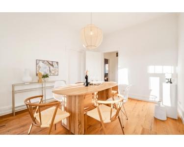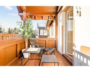Im Inneren erwarten Sie großzügige, lichtdurchflutete Räume mit eindrucksvoller Deckenhöhe. Hochwertige Echtholz-Parkettböden, eine stilvolle Materialauswahl und eine durchdachte Raumaufteilung schaffen ein Wohnambiente von bleibender Qualität. Der Balkon wird zum verlängerten Wohnraum – ein Ort für Morgenkaffee mit Bachrauschen oder stille Abende mit Burgblick.