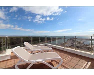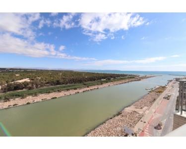 Dieses beeindruckende, nach Osten ausgerichtete Eck-Penthouse-Duplex mit drei Schlafzimmern befindet sich in exklusiver Lage direkt am Hafen von Guardamar del Segura, im 10. Stock einer gesicherten Wohnanlage mit luxuriösen Gemeinschaftseinrichtungen. Die Immobilie begeistert mit einer ca. 10 m² großen, offenen Terrasse sowie einem außergewöhnlich großzügigen, privaten Dachsolarium von ca. 74 m², von dem aus sich ein spektakulärer Panoramablick über den Fluss, das Meer, den Pinienwald und die dahinterliegenden Berge eröffnet.