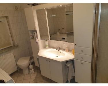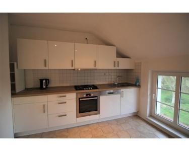 Im Obergeschoss des Wohnhauses befindet sich die Einliegerwohnung mit separaten Eingang. Ein Wohnzimmer, zwei Schlafzimmer, ein Wannenbad. Die Küche ist mit einem hellen Küchenblock ausgestattet worden.
