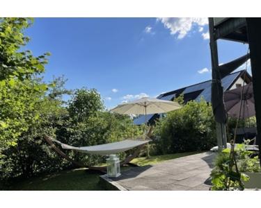 Dieses ansprechende Einfamilienhaus mit Garage und Carport eignet sich mit seinen 171 qm Wohnfläche ideal die junge Familie. Im Erdgeschoss gibt es einen großen Wohn-/Essbereich mit offener Küche. Ein Kaminofen spendet ergänzend zur Zentralheizung gemütliche Wärme. Im Obergeschoss ist neben zwei Kinderzimmern auch das Elternschlafzimmer mit begehbarem Kleiderschrank und Balkon untergebracht. Das Badezimmer verfügt über zwei Waschtische, eine Dusche sowie eine Eckwanne mit Whirlpoolfunktion. Im Keller gibt es einen großen, wohnlich ausgebauten Hobbyraum. Im Sommer lädt der herrliche Garten mit seiner riesigen nach Süden ausgerichteten Terrasse zum Verweilen ein. An einer Grundstückseite schlängelt sich ein kleiner Bachlauf entlang. Der dichte Baum- und Pflanzenbestand an den Grundstücksgrenzen gewährt auf natürliche Weise viel Sichtschutz und Privatsphäre. Das Carport verfügt über eine Wallbox zum Laden von Elektrofahrzeugen.