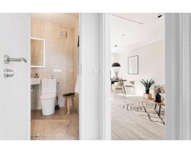 Die Wohnung wurde umfassend und hochwertig saniert. Das Badezimmer erhielt moderne Fliesen, neue Armaturen und zeitgemäße Einbauteile. In allen Wohnräumen wurde ein robuster Vinylboden in Holzoptik verlegt, der Wärme und Behaglichkeit vermittelt. Neue Innentüren mit dekorativen Zargen geben dem Interieur einen eleganten Charakter. In der Küche sorgt ein neu gesetzter Fliesenspiegel für frisches Ambiente und einfache Pflege. Einzelne Wände wurden in einem warmen Ockerton gestrichen, der harmonisch mit dem Boden und den Badezimmerfliesen zusammenspielt und den Räumen zusätzliche Wohnlichkeit verleiht. Die gesamte Elektrik wurde erneuert: moderne Kupferleitungen, FI-Schutzschalter und eine Überspannungsprüfung gewährleisten höchste Sicherheit. Der Balkon ist mit Glasschiebeelementen ausgestattet, abschließbar und damit vielseitig nutzbar - ob als Wintergarten in der kalten Jahreszeit oder als sonniger Sitzplatz im Sommer. Diese sorgfältige Kombination aus moderner Technik, stilvollem Design und funktionaler Ausstattung macht die Wohnung sofort bezugsfertig und zu einem idealen Zuhause ohne weiteren Renovierungsaufwand.