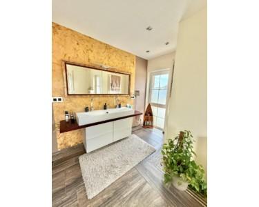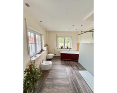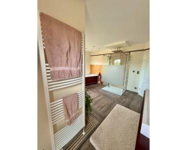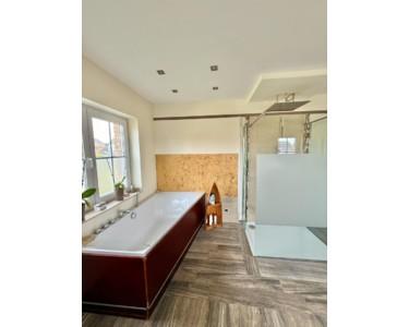 • Wellness-Bad im Obergeschoss mit Wanne und freistehender Dusche
