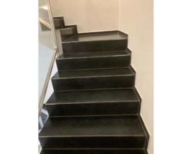 -Anthrazitfarbene Bodenfliesen und Helle-Wandfliesen im Bad