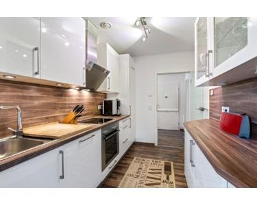- Helle, moderne Einbauküche mit Vollausstattung (Herd, Ofen, Geschirrspüler, Kühlschrank, Gefrierschrank)