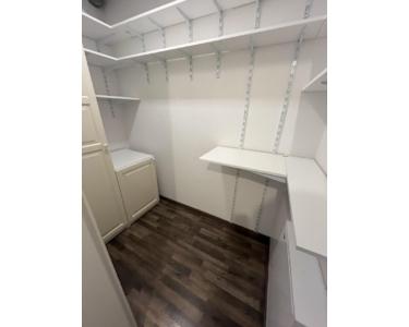 - Separater Abstellraum mit Wandregalen und Schränken für viel Stauraum