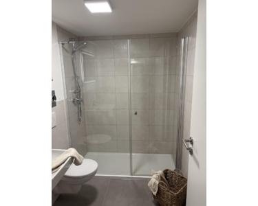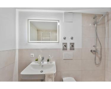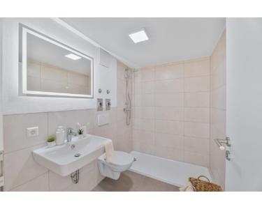 - Zeitgemäßes Badezimmer mit neuer Dusche, neuem Wachtisch, WC und Armaturen,