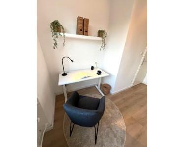 Perfekt für die Arbeit eingerichtet, mit einem Schreibtisch und einem Kleiderschrank.