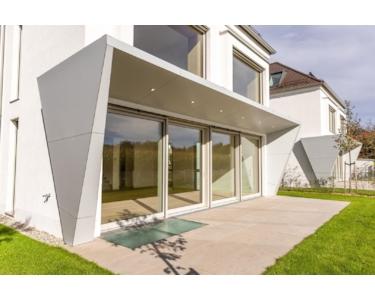 Das frei stehende Einfamilienhaus ist von der Straße aus nicht zu sehen. Über die Tiefgarage haben Sie – neben dem Hauseingang im Erdgeschoss, der nur über einen Fußweg erreicht werden kann - einen weiteren, exklusiven Zugang direkt ins Haus. Die Ausrichtung des Hauses konzentriert sich Richtung Süden mit Blick auf ein reizvolles, vielseitiges und vor allem unbebautes Feld. Der Ausblick zum Feld wird im Erdgeschoss durch Panorama-Schiebetüren und im 1.OG durch die Blumenfenster perfekt eingerahmt.