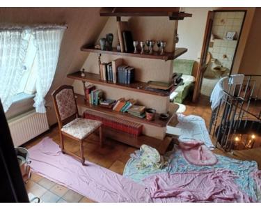 Das Objekt war bis Herbst 2023 bewohnt. Die ehemalige Eigentümerin ist im Bereich Kochen/Essen/Wohnen im DG der Wohnhauserweiterung verstorben (in den Bildern erkennbar an den Tüchern/Laken auf dem Fußboden).