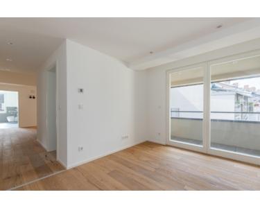 Neben der durchdachten Architektur überzeugt das Penthouse durch exklusive Ausstattungsmerkmale wie Parkettböden, Fußbodenheizung und Aufzug mit Direktzugang.