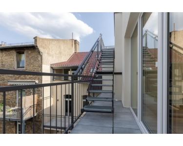 Das Highlight der Wohnung ist die weitläufige Dachterrasse, die einen unvergleichlichen Blick über die Dächer der Stadt bietet und zum Entspannen, Sonnenbaden oder geselligen Abenden mit Freunden einlädt. Große Fensterfronten sorgen für ein helles, freundliches Ambiente und schaffen nahtlose Übergänge zwischen Innen- und Außenbereich.