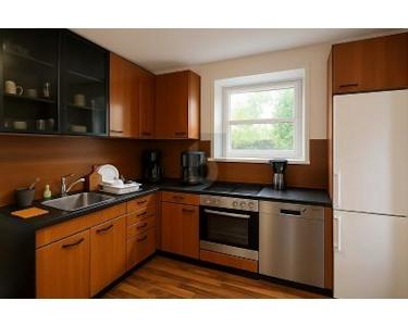 Dieses großzügige, freistehende Einfamilienhaus bietet auf mehreren Etagen viel Platz für Monteure, Projektarbeiter oder größere Gruppen. Das Haus wurde 2025 vollständig renoviert und modern ausgestattet. Durchdachte Raumaufteilung, helle Zimmer und mehrere Küchen ermöglichen komfortables und flexibles Wohnen für bis zu 10 Personen.