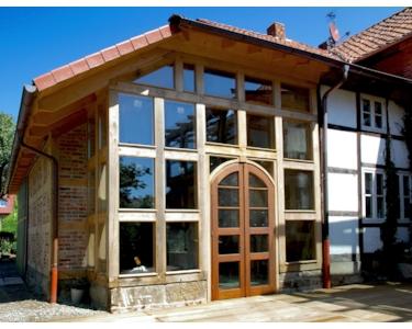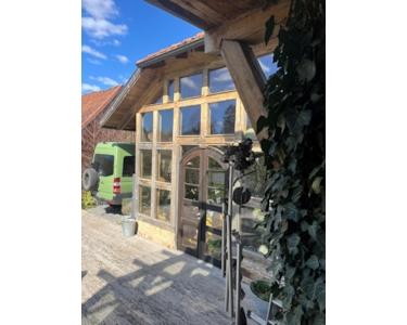 Fußböden aus Vollholz, größtenteils franz. Eiche. Wände sind mit Holzfaser gedämmt und mit Lehmputz. Verputzte Wände sind weiß und 2024 neu gestrichen. Andere Flächen sind vertäfelt. Das Dach ist 2015 mit 18 cm Holzfaser als Harzer Dach neu gemacht worden. Die 58 qm große Garage hat ein sehr großes, elektrisches Schiebetor und ist innen mit Holz ausgelegt. Auch dort ist ein Bullerjan eingebaut. Ein Holzbackofen ist optional. Ein irrer Partyraum!!!