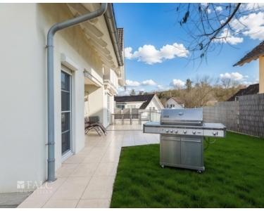 Der Außenbereich dieser Immobilie lädt zum Verweilen und Genießen ein. Herzstück ist die große Terrasse, die mit zwei Markisen ausgestattet ist und damit sowohl sonnige Nachmittage als auch laue Sommerabende zu einem besonderen Erlebnis macht. Hier lassen sich gesellige Grillabende mit Familie und Freundeskreis perfekt gestalten. Direkt angrenzend befindet sich der kleine, aber feine Garten, der für Kinder ein wahres Paradies darstellt – ein Ort zum Spielen, Toben und Glücklichsein. Gleichzeitig bietet er Erwachsenen die Möglichkeit, sich mit Blumen, Kräutern oder einfach einem ruhigen Rückzugsplatz im Grünen zu entfalten.