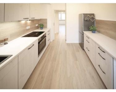 * Hochwertiger, Feuchtigkeit unempfindlicher Design-Vinylboden der Nutzungsklasse 42 in allen Räumen