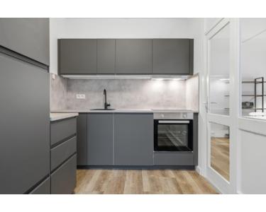 Die Ausstattung des Apartments ist hochwertig. Die Immobilie verfügt über eine hochwertige, vollausgestattete Einbauküche inklusive Herd, Kühlschrank und Waschmaschine.