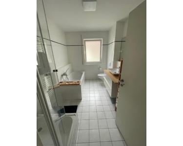 Das Tageslichtbad ist mit Badewanne, separater Duschkabine und hochwertigen Armaturen ausgestattet.