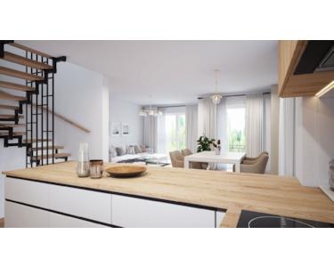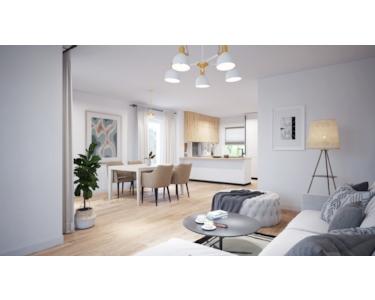 - großer Wohn-/Essbereich mit offener Küche und Balkonzugang, Eingangsbereich mit Diele & Garderobe sowie ein Gäste-WC