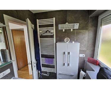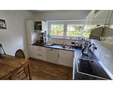 Die Küche, die direkt an den Essbereich angrenzt, bietet ausreichend Platz für die Zubereitung von Mahlzeiten und gesellige Kochabende. Die funktionale Anordnung der Räume ermöglicht einen fließenden Übergang zwischen den Bereichen und fördert das gemeinschaftliche Leben.