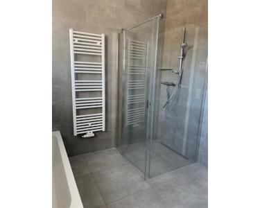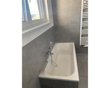 Alle Wohneinheiten verfügen über eine Terrasse oder einen Balkon rückwärtig vom Gebäude. Das Badezimmer ist modern ausgestattet – großformatige Fliesen, Badewanne, bodentiefe Dusche mit Thermostat-Mischbatterie, WC mit absenkbarem Toilettendeckel, Handwaschbecken und Handtuchheizung gehören zum Inventar. An allen Fenstern befinden sich elektrische Außenrollläden sowie ein Insektenschutz. Der Hauswirtschafsraum bietet Platz für den Staubsauger, Reinigungsmittel oder als Ablage von Gegenständen, die sonst in der Wohneinheit keinen Platz finden. Die Küche steht zur unentgeltlichen Nutzung zur Verfügung.