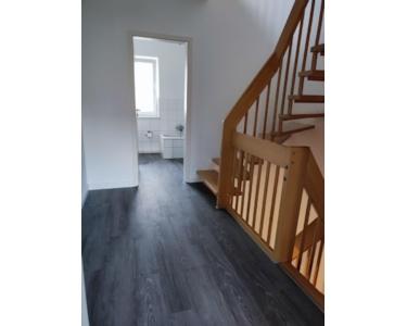Im gesamten EG wurde ein pflegeleichter, fußwarmer Design-Vinylboden in Anthrazit verlegt. Im Flur und Bad des 1.OG wurde ebenfalls ein hochwertiger Design-Vinylboden eingebracht, der farblich perfekt mit den dunkelgrauen Teppichböden in den Schlafräumen harmoniert. Das gesamte Haus wurde kürzlich frisch renoviert und befindet sich in einem sehr gepflegten Zustand.
