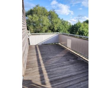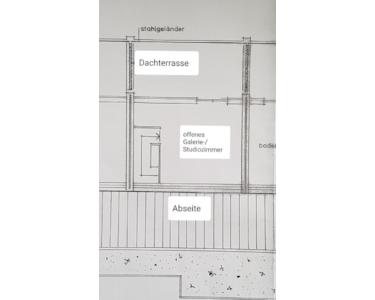 Über eine weitere offene Treppe erreichen Sie das 2.OG und damit das offene Studio- bzw. Galeriezimmer. Die hohe Decke, die gemütliche Dachschräge sowie der direkte Zugang zur sonnigen Dachterrasse (Südlage) verleihen diesem Raum eine ganz besondere Atmosphäre. Die Dachterrasse ist das absolute Highlight der Immobilie und lädt zum Sonnenbaden oder Entspannen ein.