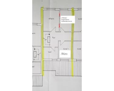 1.OG: Flur, Vollbad, Arbeits-/Gäste-/Kinderzimmer, Schlafzimmer mit offenem Ankleidezimmer