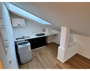 Durch die typische Dachgeschoss-Architektur mit Dachschrägen eignet sich die Wohnung ausschließlich für eine Einzelperson.