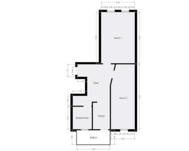 Ebenfalls im vierten Obergeschoss befindet sich die dritte Wohnung mit einer Wohnfläche von etwa 49,04 m². Der kompakte Grundriss eignet sich ideal für Singles oder Paare. Vom kleinen Flur aus sind Badezimmer sowie Wohn- und Schlafzimmer direkt zugänglich, während die Küche praktisch an das Wohnzimmer angrenzt. Große Fenster sorgen für viel Tageslicht und eine freundliche Atmosphäre. Diese Wohnung ist seit dem 01.02.2021 unbefristet vermietet.
