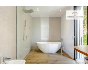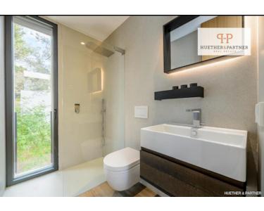 Im Untergeschoss befinden sich eine Garage für drei Fahrzeuge, der Technikraum, eine Waschküche mit Wäscheabwurfschacht von allen Etagen sowie ein weiterer Raum mit eigenem Bad, der flexibel als Fitnessraum, Sauna, Spa oder Gästezimmer genutzt werden kann.