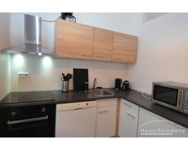 Hochwertig renoviertes Zwei Zimmer Apartment im ruhigen Hinterhaus - äußerst verkehrsgünstig - hervorragende Infrastruktur mit guten Einkaufsmöglichkeiten. Komfortable Ausstattung, teils mit Designermöbeln und Antiquitäten. Voll ausgestattete offene Einbauküche mit Mikrowelle und Ceran-Kochfeld und Geschirrspüler. Gemütliches Wohnzimmer mit Couchecke und Schreibtisch.