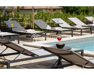 Im gepflegten und vollständig umzäunten Garten befindet sich ein wunderschöner Swimmingpool mit einer Fläche von 32 m² sowie ein Sonnendeck, das von der überdachten Terrasse aus zugänglich ist.
