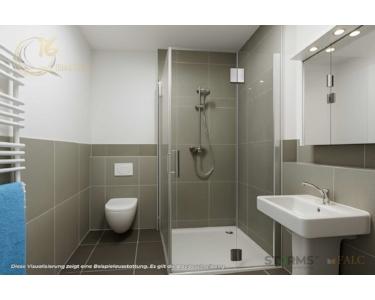 Das Badezimmer ist in der Planung mit einer bodengleichen Dusche vorgesehen. Die Sanitärausstattung wird modern und funktional ausgeführt.
