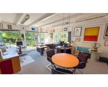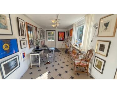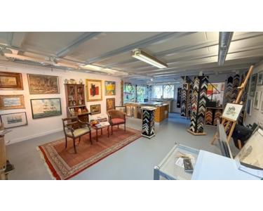Eingangsbereich, Ausstellungsbereich, Büro mit Zugang zur Terrasse, Versandbereich mit Außentür, Werkstatt, Lagerraum, Gäste-WC, Heizungsraum
