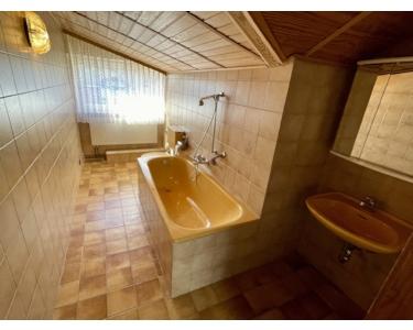 Das Haus ist mit einer Ölbrennwertheizung (Bj. 1990), Kunststofffenstern mit Isolierverglasung, Bad mit Dusche und Wanne, Gäste-WC, ausgebautem Dachgeschoss mit zusätzlichem Bad, Garage mit angrenzendem Geräteschuppen und großzügiger Terrasse ausgestattet. Es befindet sich in gepflegtem Zustand und weist eine solide Bausubstanz auf. Modernisierungs- und Renovierungsarbeiten stehen jedoch an.