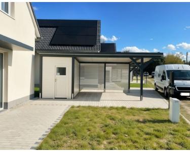 Im Außenbereich erwarten Sie ein Carport mit angrenzendem Abstellschuppen sowie weitere Stellplätze für Fahrzeuge.