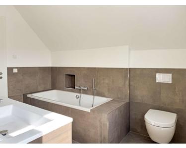 Über eine elegante Treppe gelangen Sie in das Obergeschoss. Hier befinden sich zwei helle Kinderzimmer sowie das Elternschlafzimmer mit begehbarer Ankleide. Das große Tageslichtbad ist mit einer bodengleichen Dusche und einer Badewanne ausgestattet – ein Ort zum Entspannen und Genießen.
